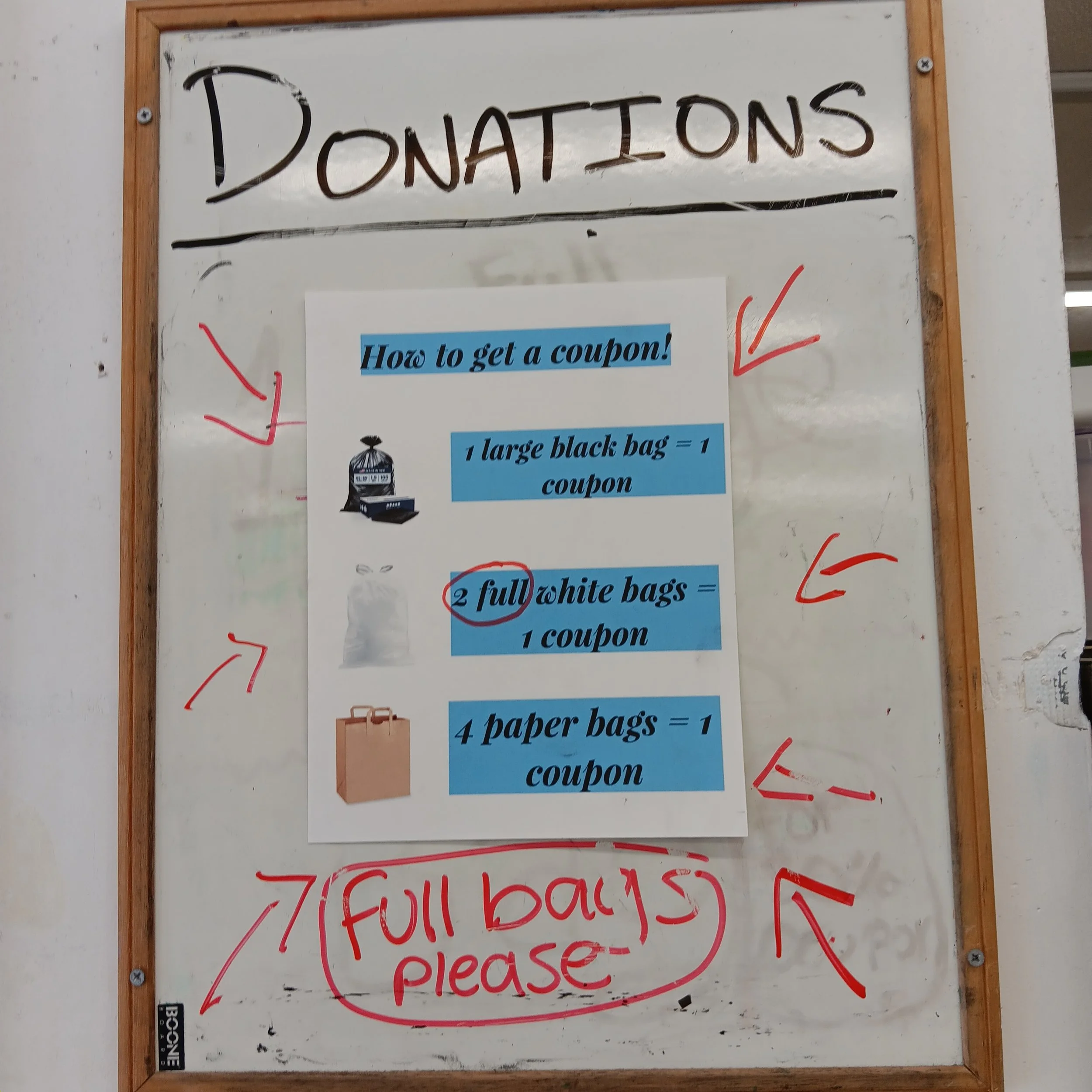 Better Bargains has changed their donation policy. Now you need 4 bags of items to trade in for a 30% off coupon.